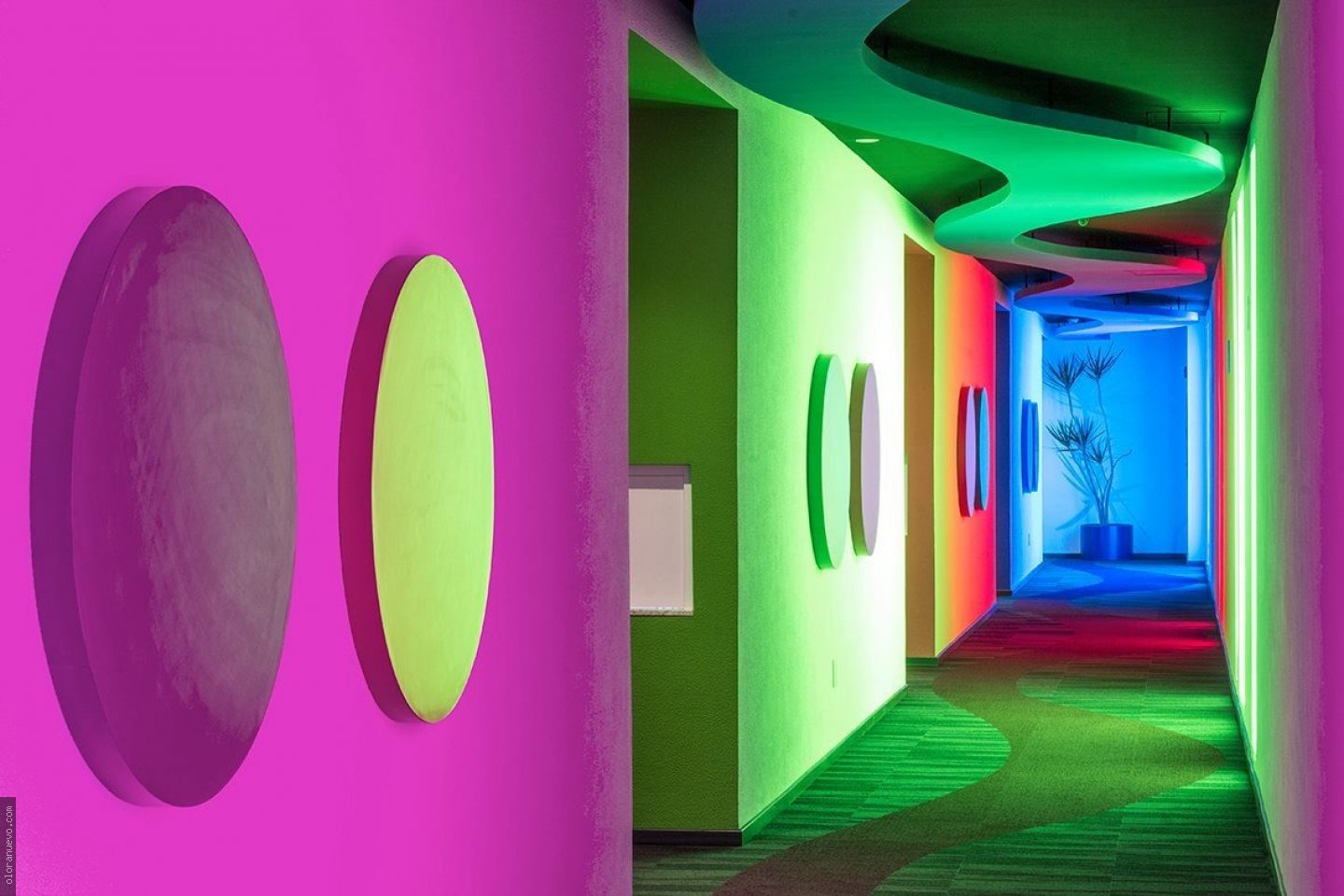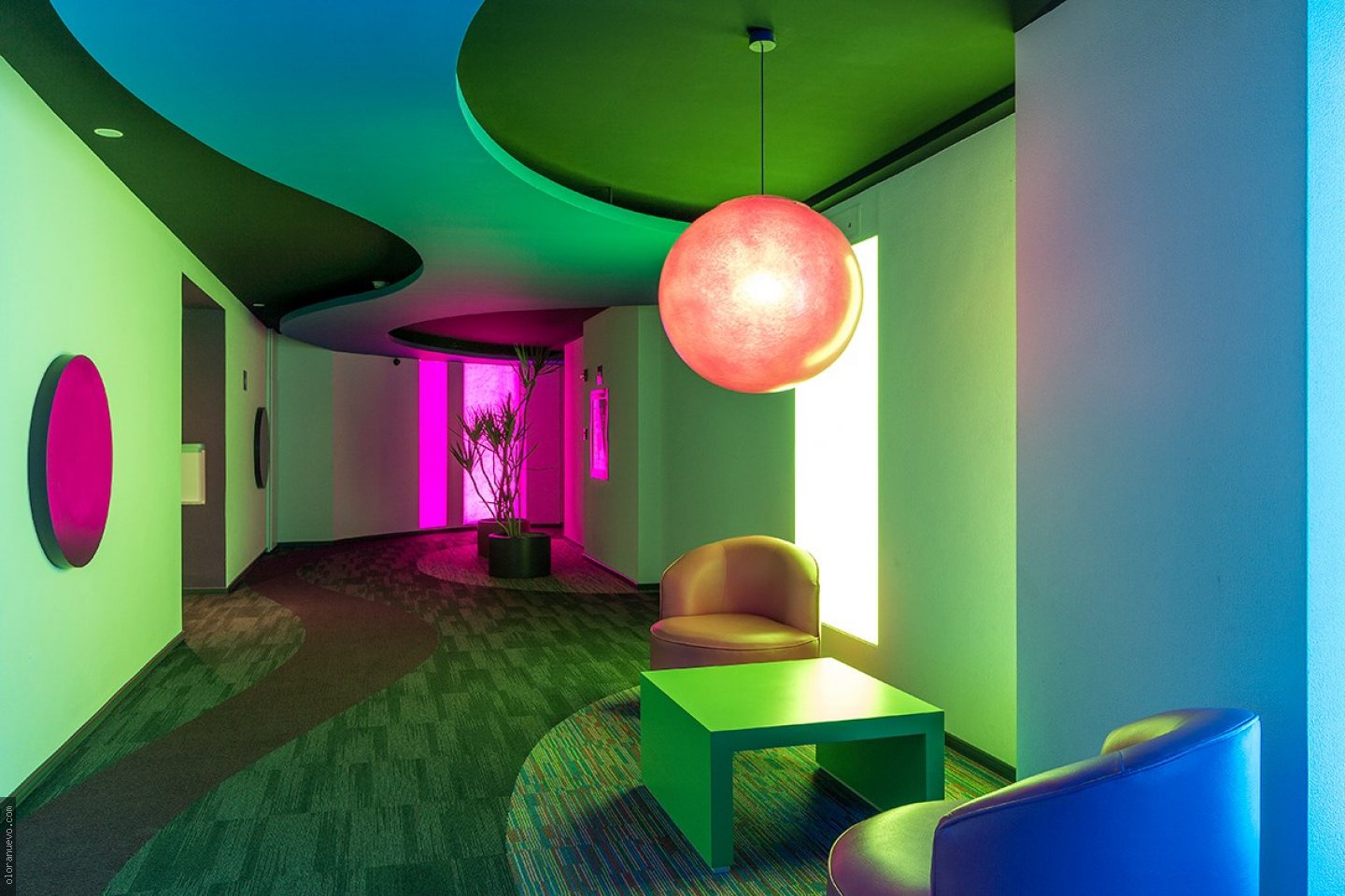 Hemos creado un mundo envolvente basado en las esferas y los círculos, donde tuvimos la oportunidad de realizar el proyecto arquitectónico y el proyecto de interiorismo.