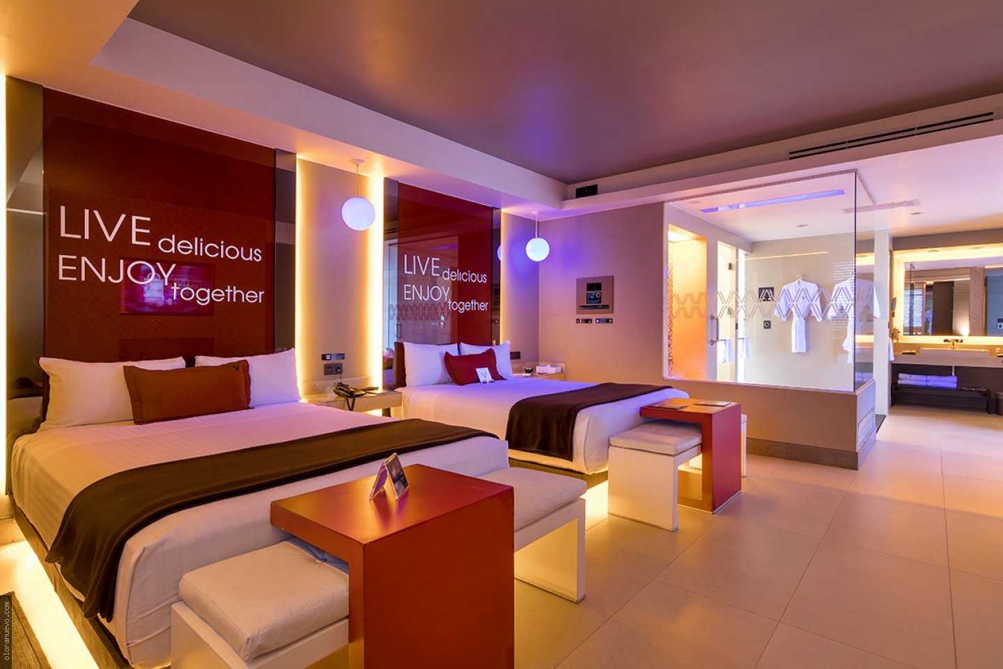 Diseñamos dos habitaciones completamente nuevas, Pool & Spa y Pool Party Room. Además de darle un refresco y actualización general a todas las habitaciones, pasillos, lobbys y restaurante.